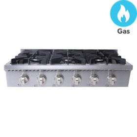 The Thor Kitchen HRT3618U gas range top is a gas cooker that provides more versatile cooking options and has a durable outlook. It is constructed entirely out of stainless steel material, which allows the kitchen appliance to be cleaned easily.