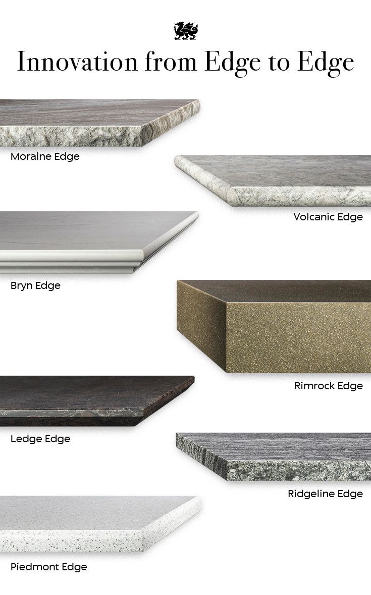 Quartz countertop edge profiles are usually the most diverse, since quartz is durable and can handle even the most intricate edge designs. Laminate countertop edge options tend to be more limited. Ask your countertop manufacturer which types of countertop edges are possible for your counter material.