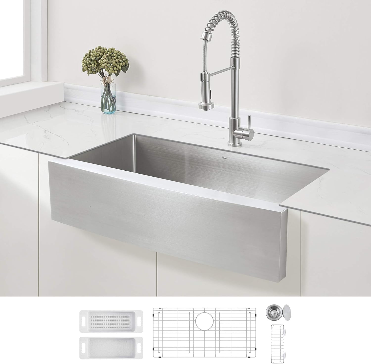 ZUHNE Stainless Steel Farmhouse Kitchen Sink (36-Inch Apron Front, 16-Gauge Single Bowl)