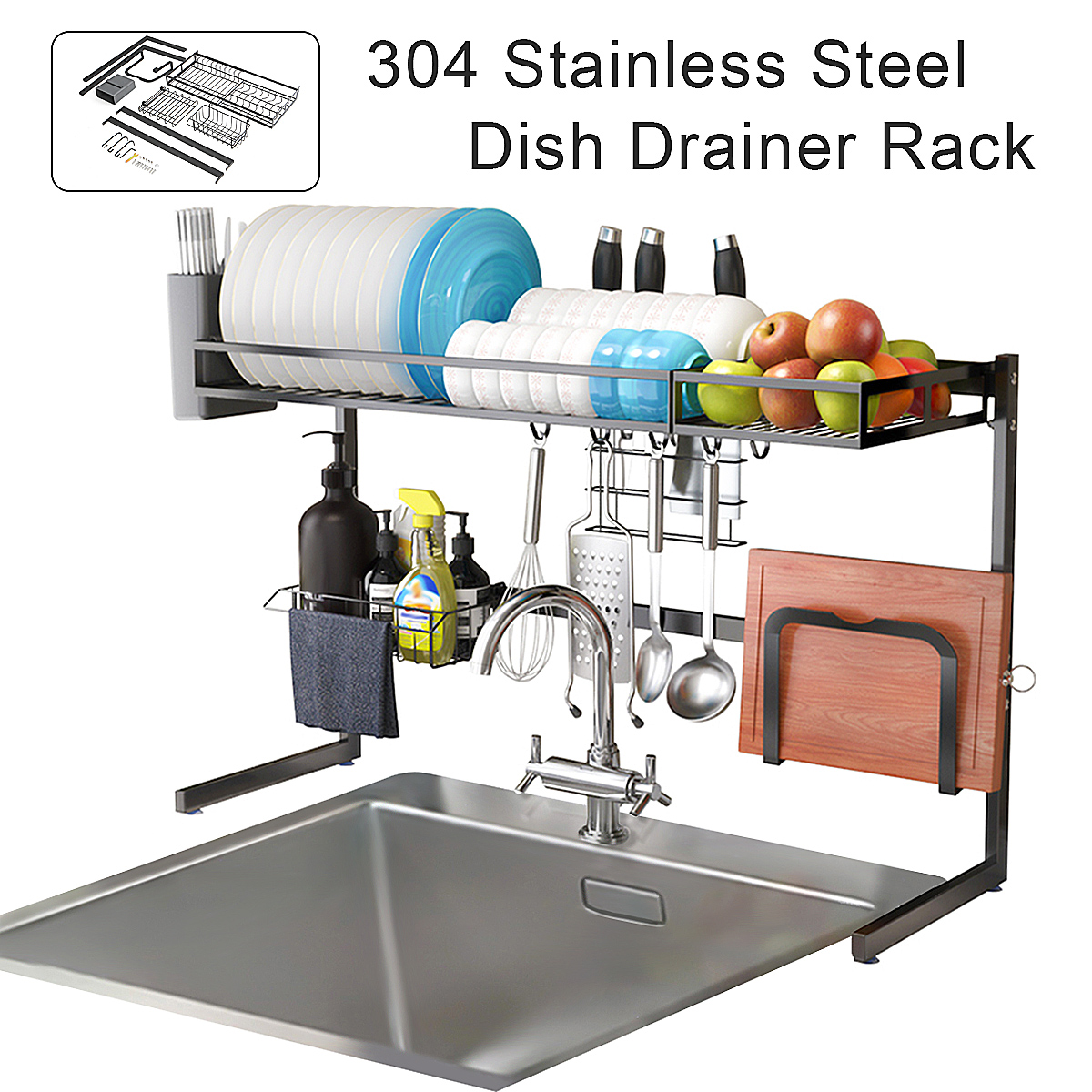 60cm/ 70cm/ 80cm/ 90cm Black 304 Stainless Steel Sink/dish Drain Rack Kitchen Sink Storage Shelf Kitchen Organizer Dish Rack