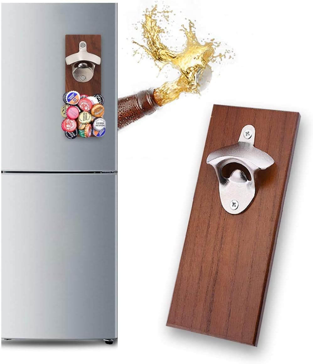 DropCatch Magnetic Bottle Opener Review - BlackTailNYC.com With The DropCatch, you'll have a sturdy stainless steel beer bottle opener that connects directly to a quarter-sawn walnut hardwood backing (featuring maple inlays and water-resistant lacquer) that you can mount to your fridge or magnetically attach to your wall. Bottle caps are attracted to the powerful magnet before they fall to the ground.