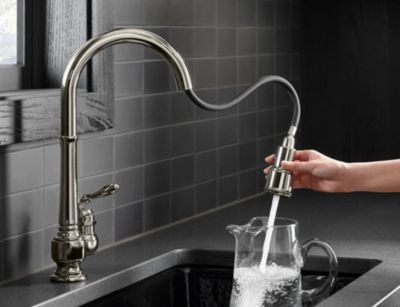Black KOHLER Pull Down Kitchen Faucets - The Home Depot Some of the most reviewed products in Black KOHLER Pull Down Kitchen Faucets are the KOHLER Elmbrook Single-Handle Pull-Down Sprayer Kitchen Faucet in Matte Black with 398 reviews and the KOHLER Rune Single-Handle Pull-Down Sprayer Kitchen Faucet in Black Stainless with 173 reviews.