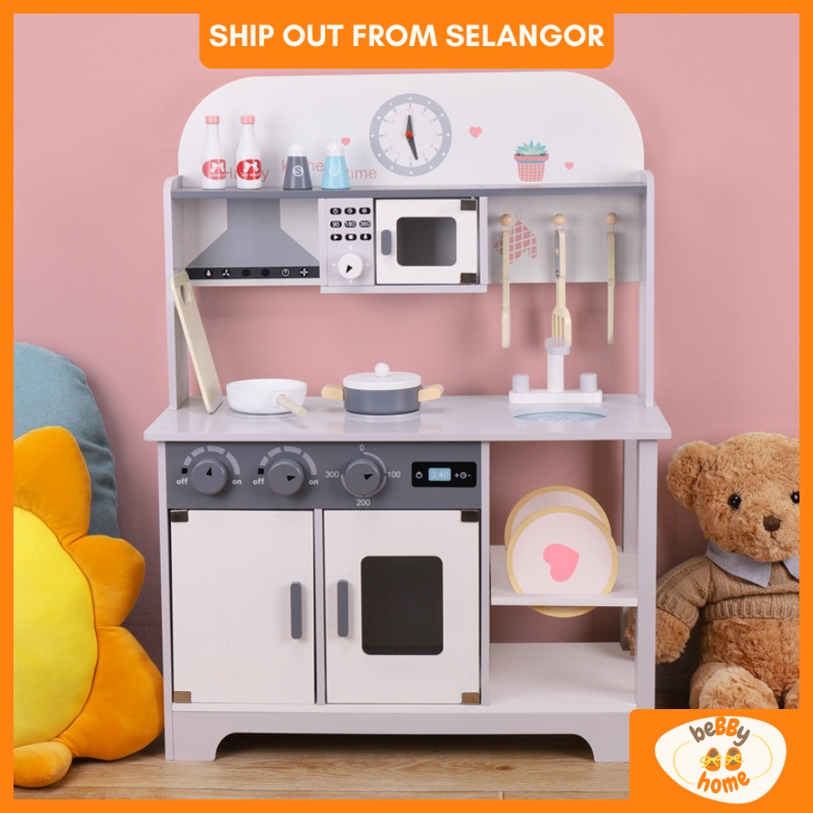 Kids Kitchen Set Pretend Play Wooden Toys Cooking Cookware Features Entice your mini chefs to explore their culinary genius Well-equipped wooden kitchen set with a microwave, an oven and a fridge Non-toxic, environmentally friendly and easy-to-clean paint Much fun when play with friends and family Colourful design; fun way to teach kids about cooking Large storage space for cooking gadgets when not in ...