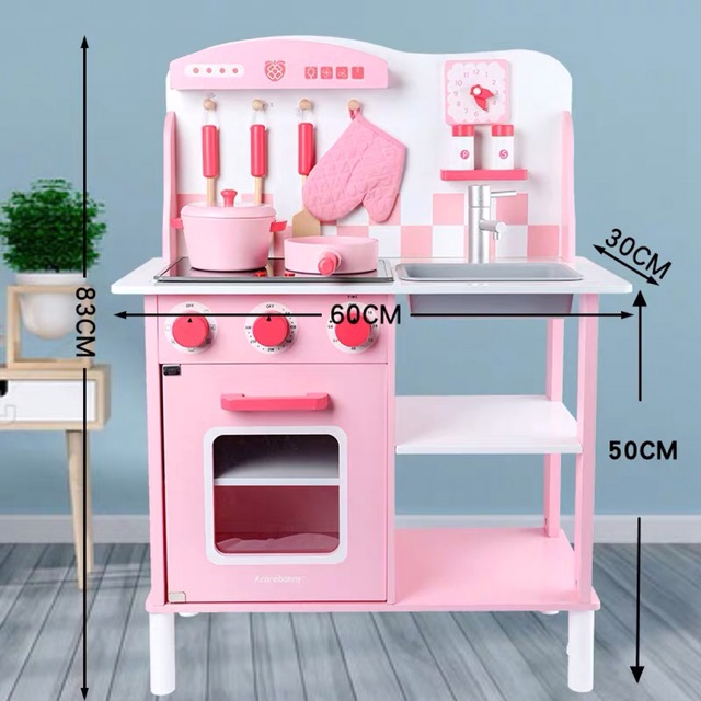 Wood Toy Kitchen Kids Cooking Pretend Play Set Specification: ·Color: White & Pink. ·Material: MDF + Pinewood. ·Overall dimension: 41.7" x 11.8" x 42.1". ·The height from worktop to floor: 18.9" Description:This toy kitchen set is a fabulous gift for your beloved children to let them enjoy the pleasure that this special gift has brought. This is our brand new and adorable wood kitchen ...